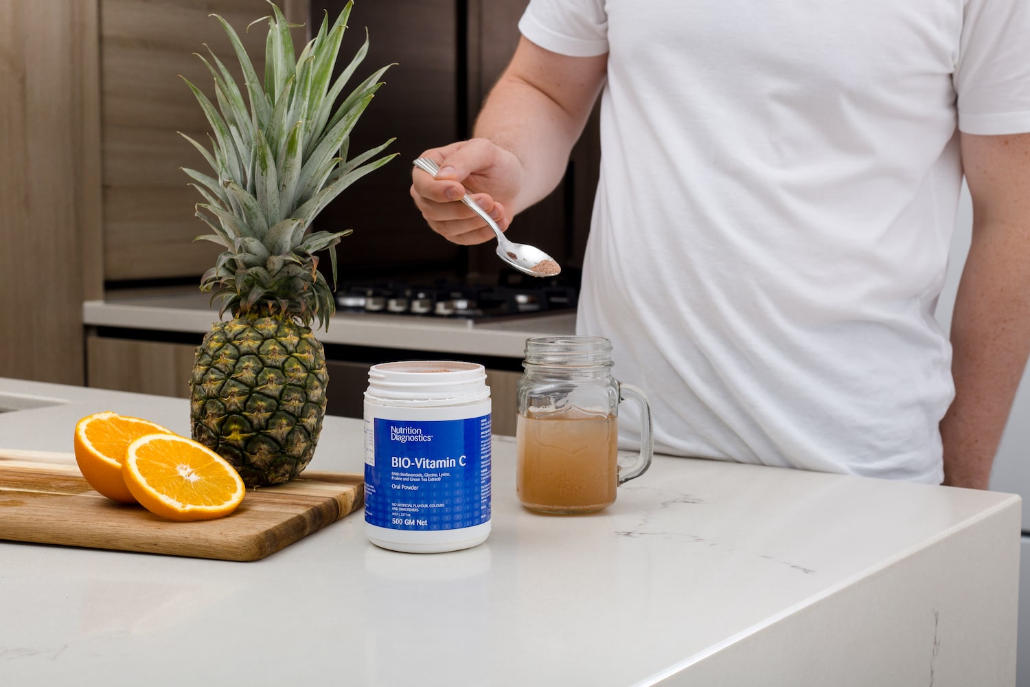 Bio Vitamin C is a high strength vitamin C powder that also contains Lysine, Proline, Glycine, bioflavonoids, and a standardised green tea extract. Made from all-natural ingredients, it is free of calcium ascorbate, artificial colours, sweeteners and sugar. Thus, it is a healthier and more absorbable vitamin C powder than other products on the market. As our vitamin C powder is water soluble, it can be absorbed by the body very quickly, which enables it to address symptoms and provide noticeable relief in a short time frame.