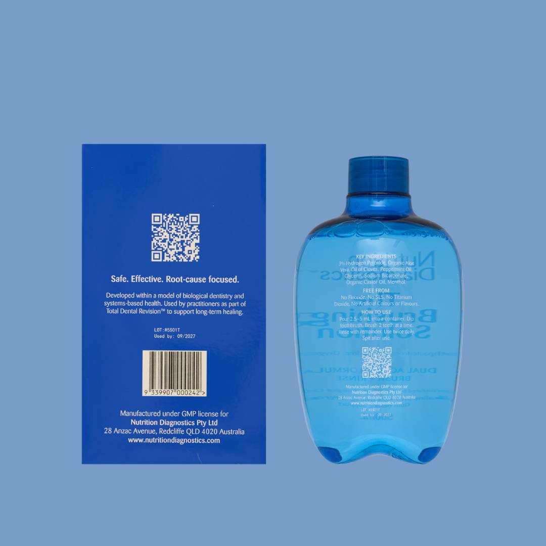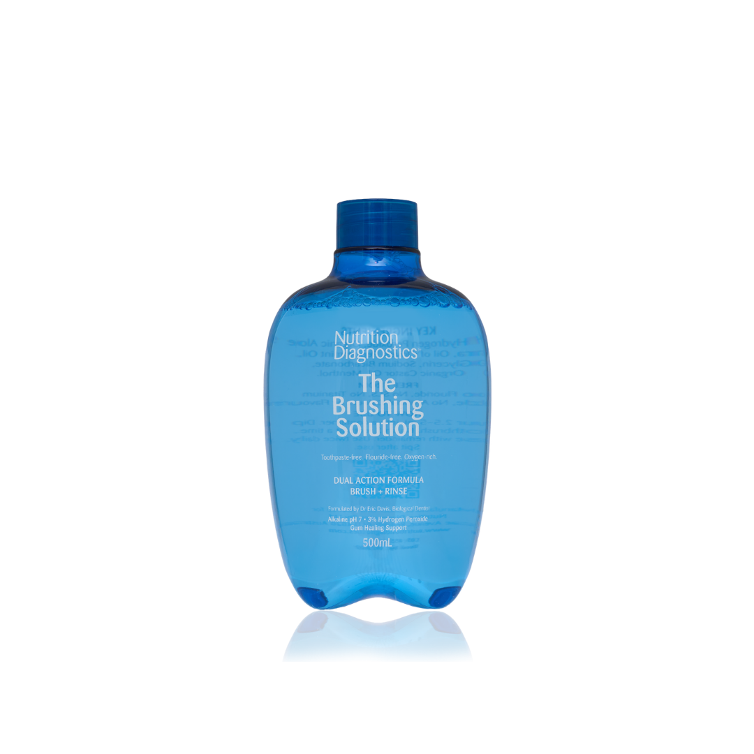 The Brushing Solution is a liquid oral rinse, originally developed as a natural alternative to toothpaste. Today, it’s used primarily as a mouthwash after brushing — though it can also be used in place of toothpaste for those with active gum disease. To use, pour 2.5–5mL into a small container, swish and gargle thoroughly, ensuring it reaches all areas of the mouth. Do not swallow, and for optimal results, avoid eating and drinking for 1 hour after.